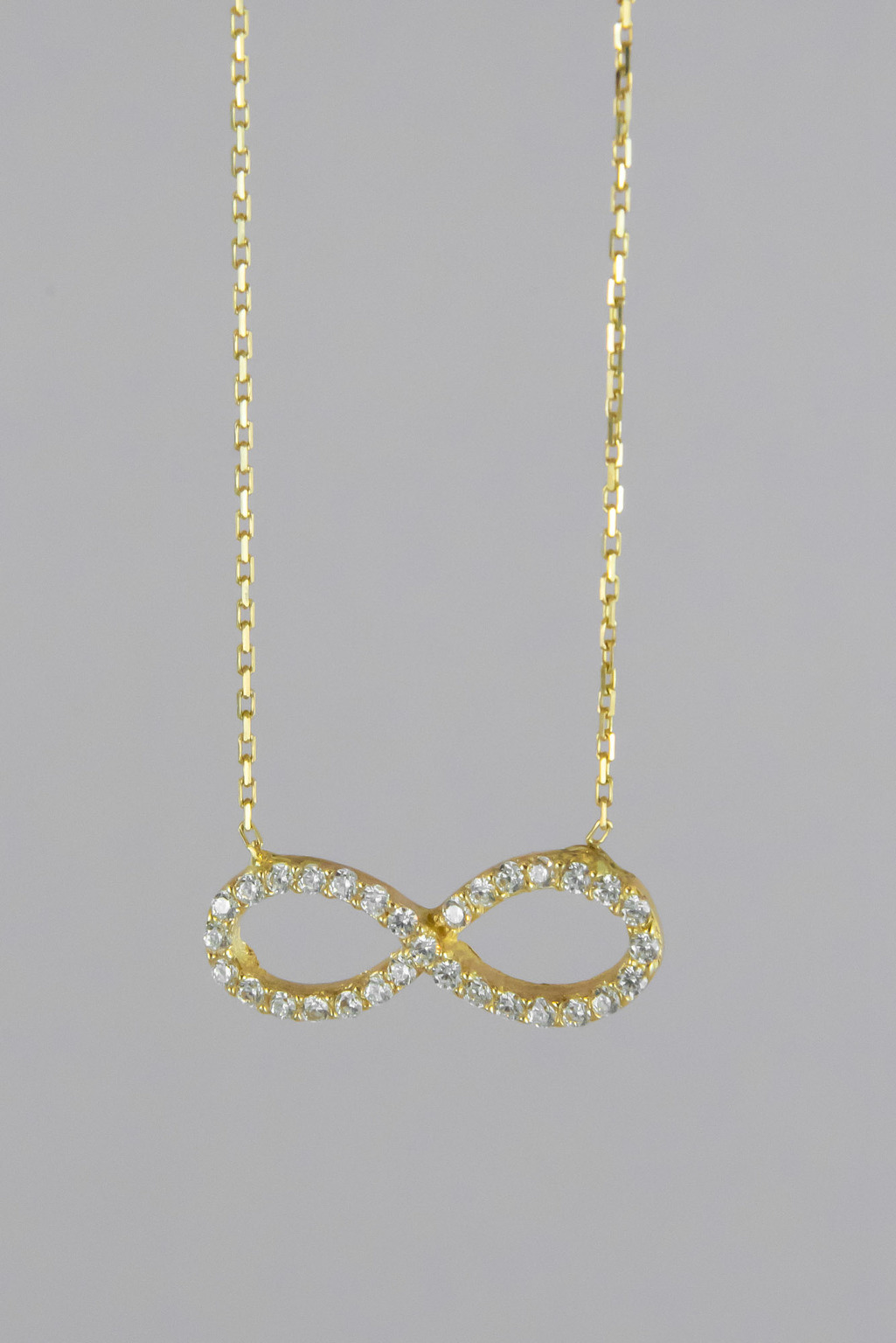 Γυναικείο κολιέ σε σχέδιο άπειρου στολισμένο από ημιπολύτιμες πέτρες ζιργκόν.Στην αναγραφόμενη τιμή περιλαμβάνεται και η αλυσίδα.