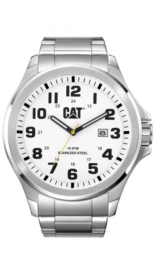 Ανδρικό ρολόι Caterpillar από ανοξείδωτο ατσάλι λευκό καντράν και ασημί μπρασελέ.
